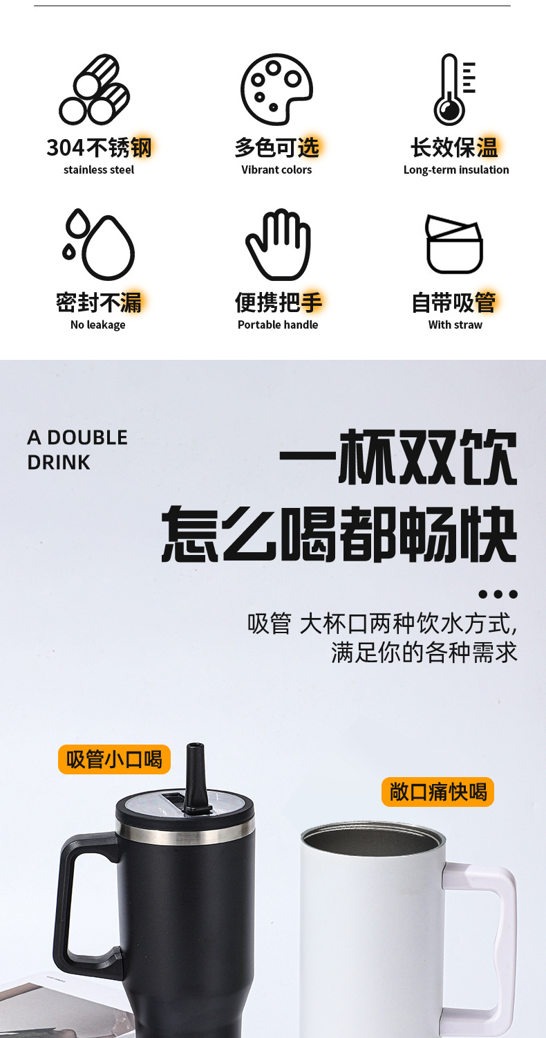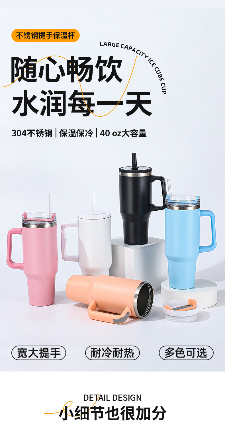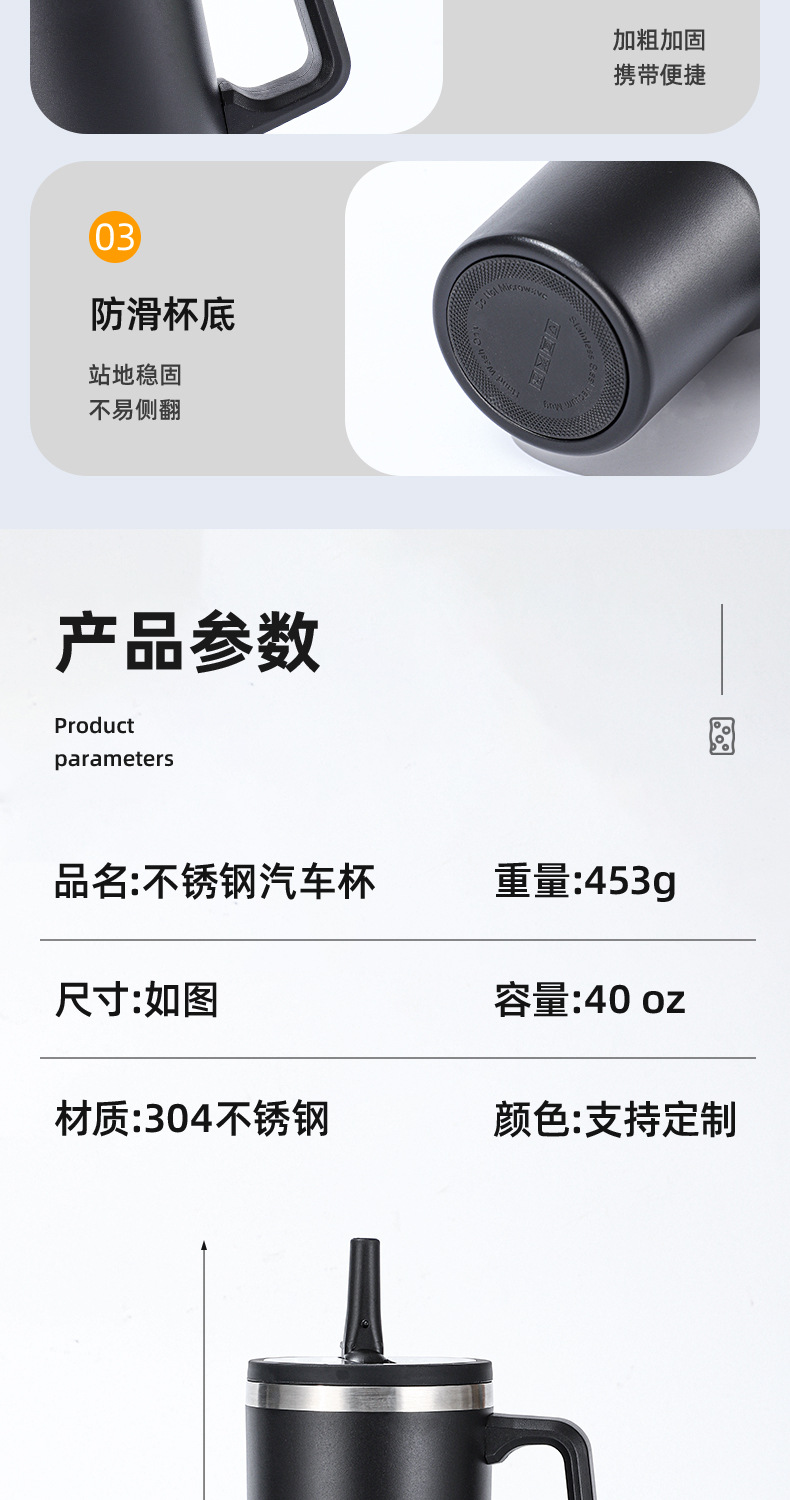 跨境40oz汽车杯大容量304不锈钢保温杯带手柄车载便携冰霸杯