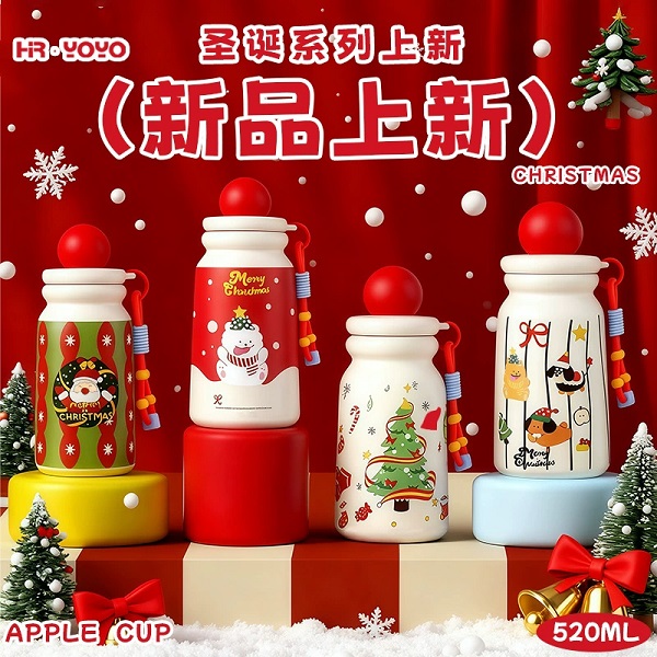 创意涂鸦圣诞礼品杯简约可爱泡茶不锈钢保温杯新款高颜值水杯