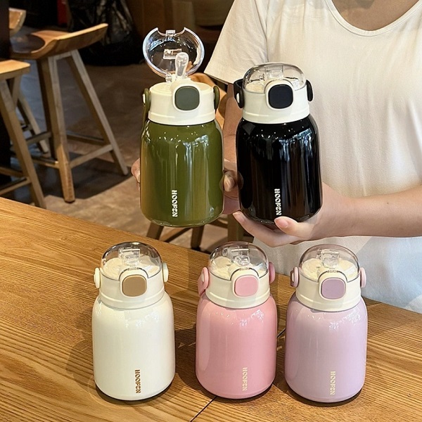 新款大容量儿童壶316不锈钢保温杯可爱女生便携吸管杯大肚杯