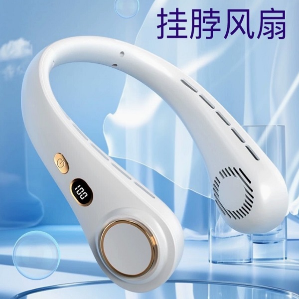 跨境新款迷你无叶数显挂脖小风扇户外运动便携式电风扇充电款